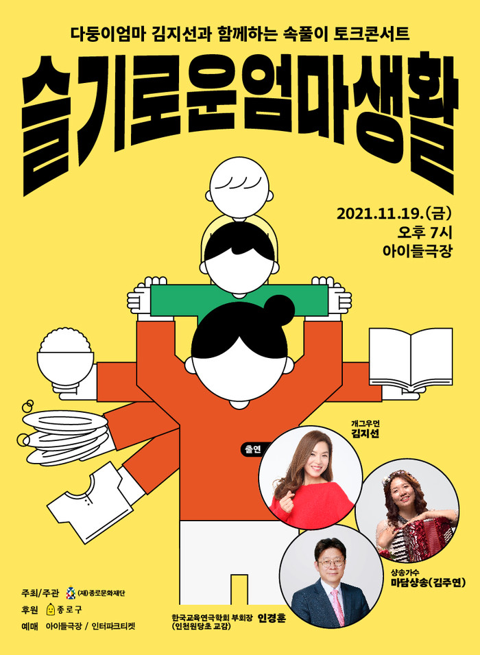 [시민일보 = 이대우 기자] 서울 종로구는 19일 아이들극장(성균관로 91)에서 「슬기로운 엄마생활」 토크 콘서트를 개최한다.
