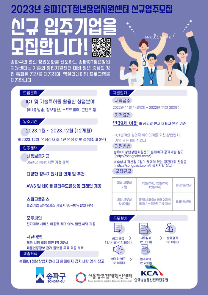 | ▲ 2023년 송파ICT청년창업지원센터 신규입주모집 포스터 (사진제공=송파구청) |