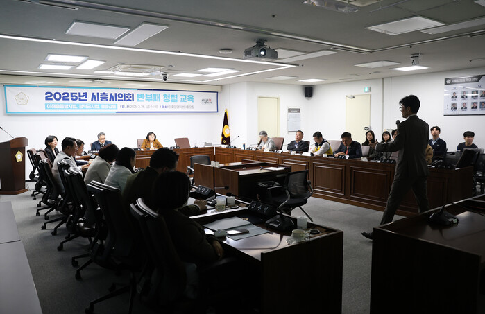 | ▲ 시흥시의회가 3월 28일 의회운영위원회 회의장에서 시의원들과 의회사무국 직원들을 대상으로 투명하고 청렴한 조직문화 조성을 위한 반부패 청렴 교육을 실시했다 /사진제공=시흥시의회 |