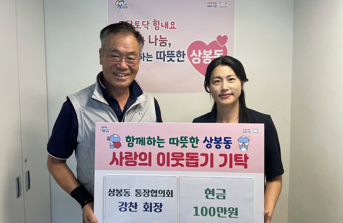 최은영 상봉동장은 “이웃들을 위한 따뜻한 나눔을 실천해주신 강찬 회장님께 감사드린다”며 “기탁받은 현금은 도움이 필요한 이웃들에게 소중히 전달하여 따뜻한 추석 명절을 보낼 수 있도록 하겠다”고 말했다.