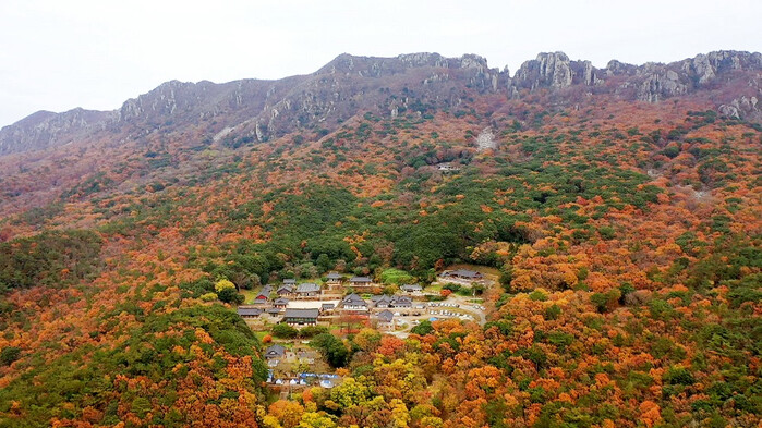 | ▲ 단풍이 절정에 이르고 있는 두륜산과 대흥사 전경 / 해남군 제공 |