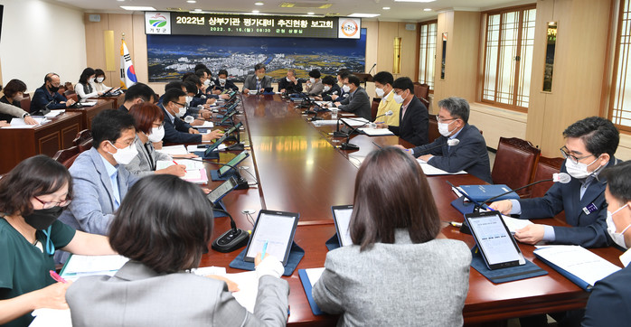 이날 보고회는 부서별로 체계적이고 전략적으로 상부기관 평가업무를 준비하기 위하여 추진계획을 점검하는데 중점을 두고 진행했다.