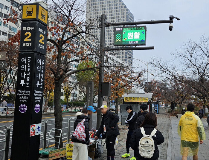 특히 여의나루역 출구 앞은 각종 행사와 한강을 찾는 시민들로 인해 인파 밀집이 가장 심한 지역 중 하나이다. 이에 구는 지난해 12월, 여의나루역 2·3번 출구 앞 2곳에 ‘인파감지 폐쇄회로(CC)TV’와 ‘인공지능(AI) 기반 자동 방송 시스템’을 연계 구축해, 인파 밀집 상황을 실시간으로 분석하고 있다.