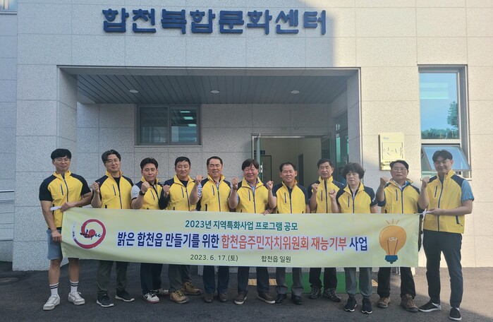 [합천=이영수 기자] 합천군 합천읍주민자치위원회는 17일 합천읍 일대 마을회관에서 강광열 합천읍주민자치위원장 및 위원 15여명이 참여해 ‘밝은 합천읍 만들기를 위한 주민자치위원 재능기부사업’을 진행했다.