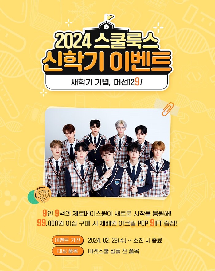 스쿨룩스 전략실 김율 실장은 "전속모델인 제로베이스원의 9인 9색으로 신학기를 맞은 학생들의 새로운 시작을 응원하기 위해 이번 이벤트를 기획했다”며 “이번 기회를 통해 학생들이 스쿨룩스의 다양한 상품을 경험하고 제로베이스원의 응원을 통해 힘찬 신학기를 보내길 바란다”고 전했다.