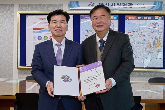 충남 아산시가 지난 4일 시민고충처리위원으로 전 국민권익위원회 소속 공무원인 김경태 위원을 위촉하고 위촉장을 전달했다. 새로 위촉된 김 위원은 앞으로 2년간 시민의 대리인으로서 시 행정에 대한 시민의 고충민원을 접수해 중립적인 입장에서 조사하고 처리하는 시민고충처리위원으로 활동하게 된다. 사진은 조일교 아산시장 권한대행(왼쪽)과 김 위원이 기념촬영을 하고 있는 모습. (사진=아산시청 제공)