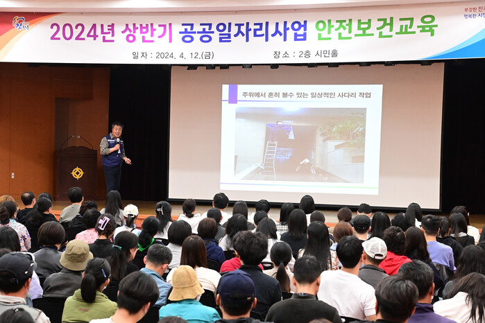 진주시는 지난 12일 시청 2층 시민홀에서 2024년 상반기 공공일자리사업 참여자 330여 명을 대상으로 ‘안전보건 교육’을 실시했다.