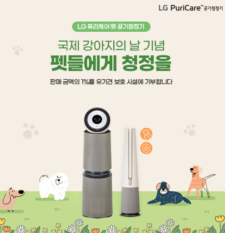 LG전자는 지난 3월 국제 강아지의 날을 맞아 펫 공기청정기 판매 금액의 1%에 해당하는 제품을 동물복지단체에 기부하는 이벤트를 진행한 바 있다. 이에 LG전자는 약 3,600만원 상당의 ‘LG 퓨리케어 360도 공기청정기 알파UP 펫’ 제품을 한국유기동물복지협회에 전달했다.