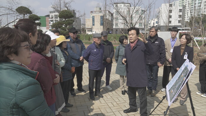 진주시는 27일 정촌면 예하리 1350번지 일원의 화개천 수변공원에서 ‘2023년 기후대응 도시숲 조성사업’ 준공 현장점검을 실시하였다.