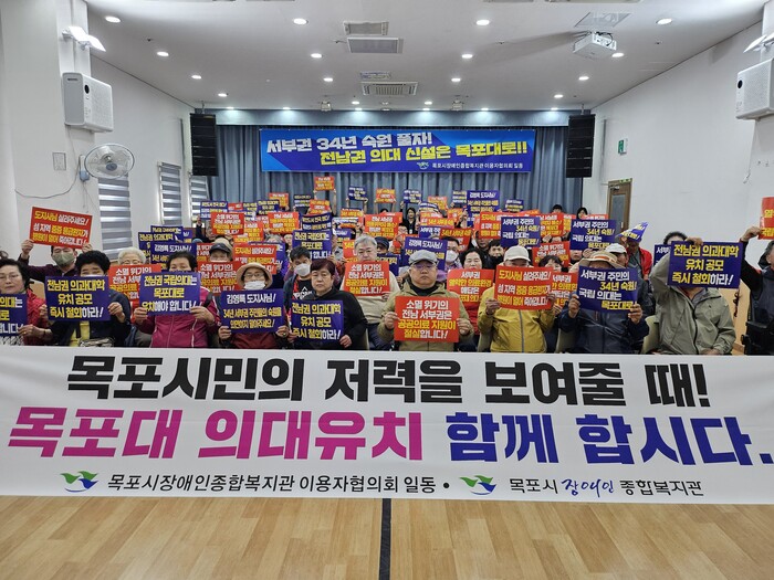 [목포=황승순 기자]목포시장애인종합복지관 이용자협의회(회장 박준형)은 4월 18일(목) 복지관 2층 강당에서 전남권 국립 의대 유치와 관련, ‘목포대학교 의과대학 신설’에 대한 성명을 발표했다.