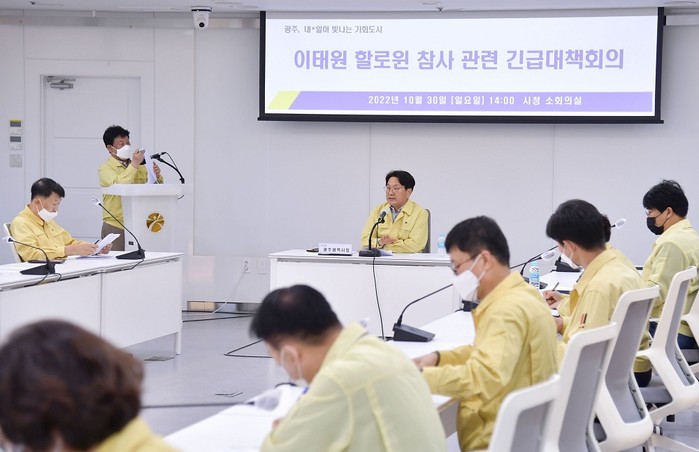 이날 회의에는 강 시장을 비롯해 실·국장 등 20여 명이 참석했으며 광주시는 회의 시작에 앞서 희생자에 대한 묵념을 진행하고 곧바로 상황 보고 및 안전 대책, 추모·애도기간 운영 등에 대해 논의했다.