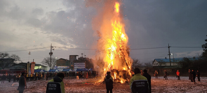 진주시 이반성면은 지난 12일 구)이반성면 중학교 일대에서 ‘이반성면민과 함께하는 정원대보름 달집태우기 행사’를 개최했다.