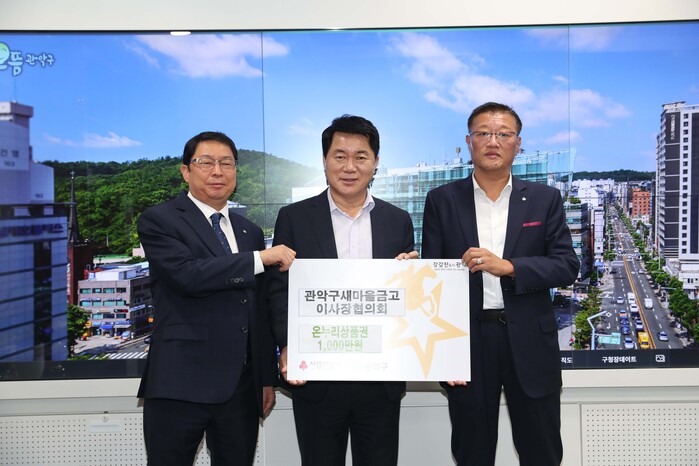 구에 따르면 지난 12일, 구새마을금고 이사장협의회는 온누리상품권 1000만 원을 구에 후원했다.