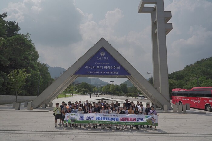| ▲ 해남교육지원청, 해남영재교육원 학생40여 명 대상 지난 12일~14일까지 2박3일 서울대학교 일원에서 “2024. 해남영재교육원 진로 진학 멘토링” 운영 기념촬영 / 해남교육지원청 제공. |