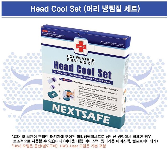 ㈜넥스트세이프는 ‘폭염응급키트 HW3’, ‘폭염응급키트 밀리터리’와 같은 재난용품을 연구 및 개발해왔으며, 폭염응급키트는 군부대 및 관공소, 기업에서 사용하고 있는 제품이다.
