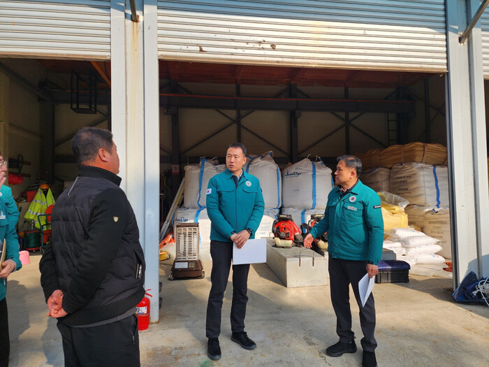 이어 면사무소의 수방자재 창고를 방문해 제설제의 적정량 확보와 보관 상태를 점검하고, 제설 장비가 원활하게 작동할 수 있도록 정비 상태와 배치 상황도 확인했다.