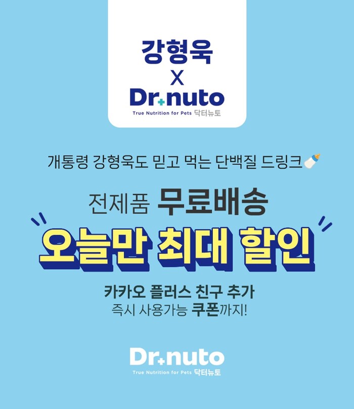 대상펫라이프(대표 강인수)는 '강형욱의 보듬TV' 출연기념으로 닥터뉴토 탄단지 프토틴 드링크 할인 프로모션을 진행한다고 10일 밝혔다.