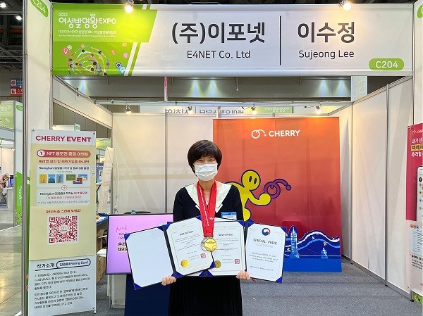 [시민일보 = 이승준 기자] IT 전문 기업 이포넷의 이수정 대표가 최근 킨텍스에서 개최된 제15회 대한민국 세계여성발명대회 시상식에서 블록체인 기반 기부플랫폼 ‘체리’를 발명한 성과를 인정받아 금상과 은상, 특별상인 과학기술정보통신부 장관상을 수상했다.