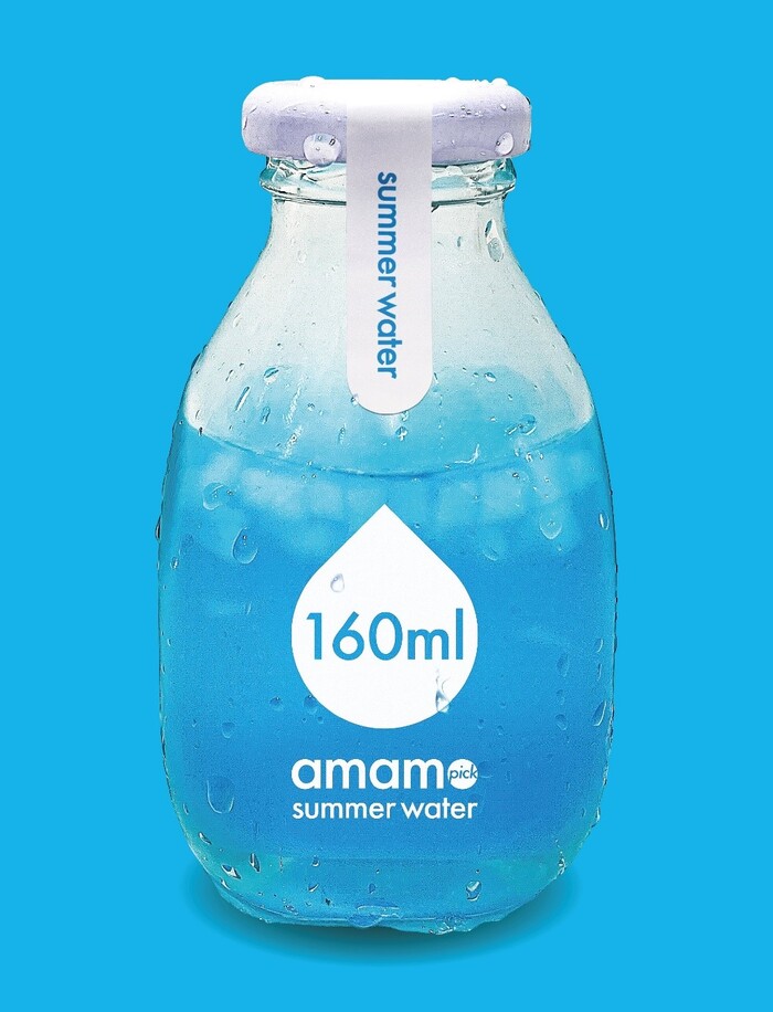 아맘픽 ‘썸머워터 160’은 자체 개발한 음료로 LG Styler 팝업스토어의 성공을 기원하고 에너지 절약의 의미를 전달하기 위해서 ‘특별 기획’ 하에 제작되었다.