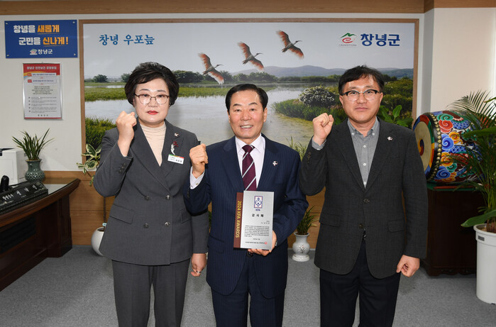 | ▲ 성낙인 창녕군수가 대한축구협회로부터 KFA AWARDS 감사패를 수여받았다. |