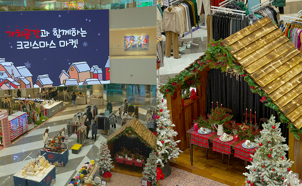 1층 오픈스퀘어 광장 공간을 활용한 크리스마스 오두막 파티 콘셉트 마켓
