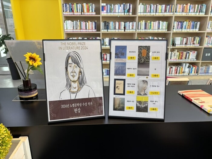 [해남=정찬남 기자] 소설가 한강이 2024년 노벨문학상 수상자로 선정돼 해남 군립도서관에도 한강 바람이 불고 있다.