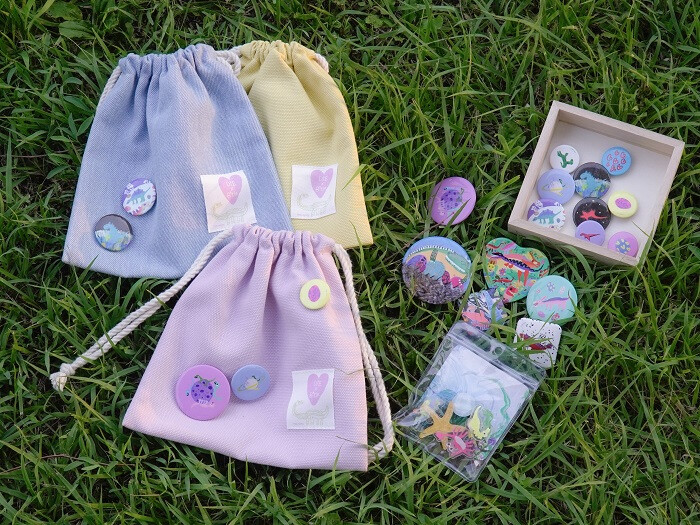 파우치와 핀버튼, 슈즈 아크릴참, 럭키드로우 등 모든 굿즈는 안드레의 그림을 토대로 제작되었으며, 관람객은 핀버튼으로 직접 파우치를 꾸미는 DIY 체험을 통해 공룡 친구들이 담긴 ‘나만의 파우치’를 완성할 수 있었다.