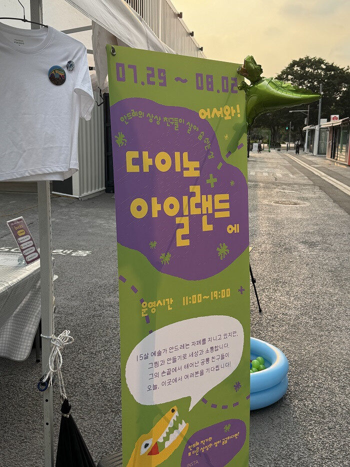 이번 플리마켓은 마치 작가가 그린 공룡들이 사는 섬을 탐험하는 듯한 구성으로 이루어졌다. 관람객은 작가의 작품을 기반으로 제작된 굿즈들을 직접 보고 만지며, 예술가의 세계를 체험했다.