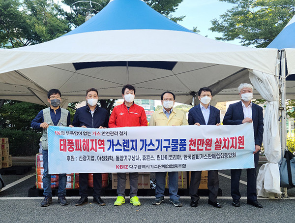 | ▲ 대구광역시가스판매협동조합에서 후원기업들과 함께 태풍지역 주민에게 가스레인지를 기증했다. |