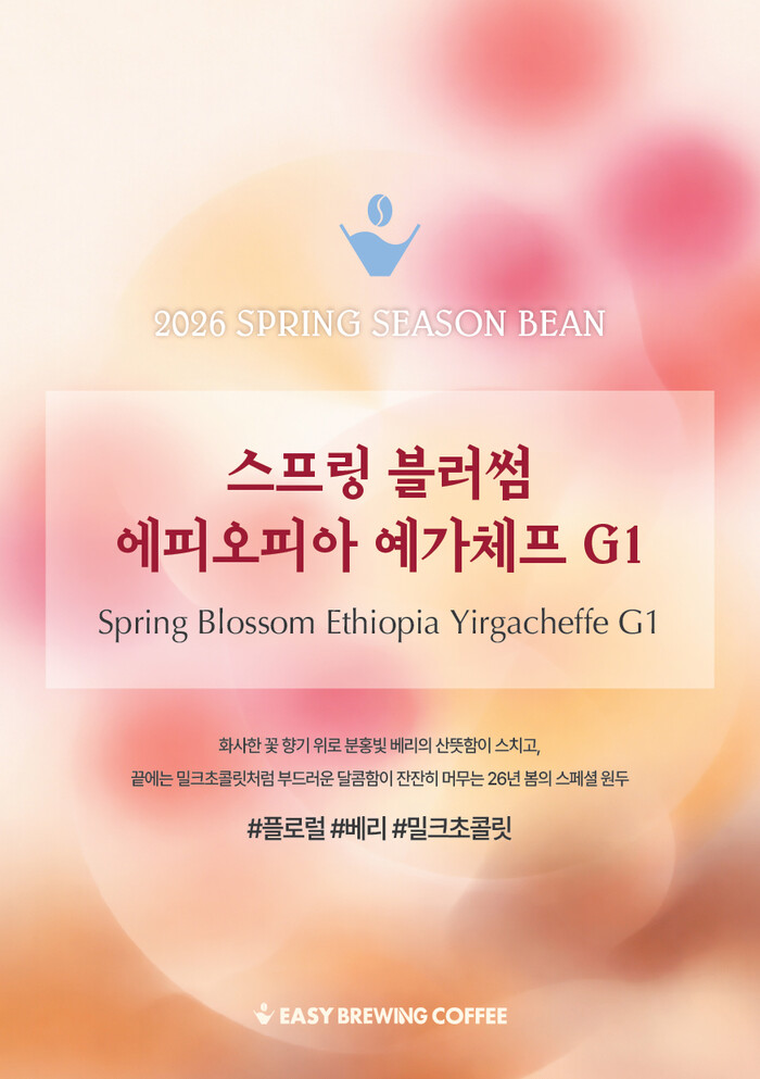 함께 선보이는 봄 시즌빈은 계절에 맞춰 큐레이션 된 스페셜 원두다. 2026년 봄 시즌빈인 ‘스프링 블러썸 에티오피아 예가체프G1’은 에티오피아 예가체프 코케허니와 구지 오로미아 지역 원두를 사용했다. 컵노트는 플로럴, 베리, 밀크초콜릿으로 구성됐다.