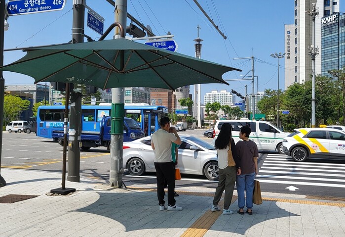 | ▲ 강서구가 폭염 종합대책을 수립하고 선제 대응에 나섰다. 사진은 주민들이 햇볕을 피하기 위해 무더위 그늘막에 서있는 모습. (사진=강서구청 제공) |