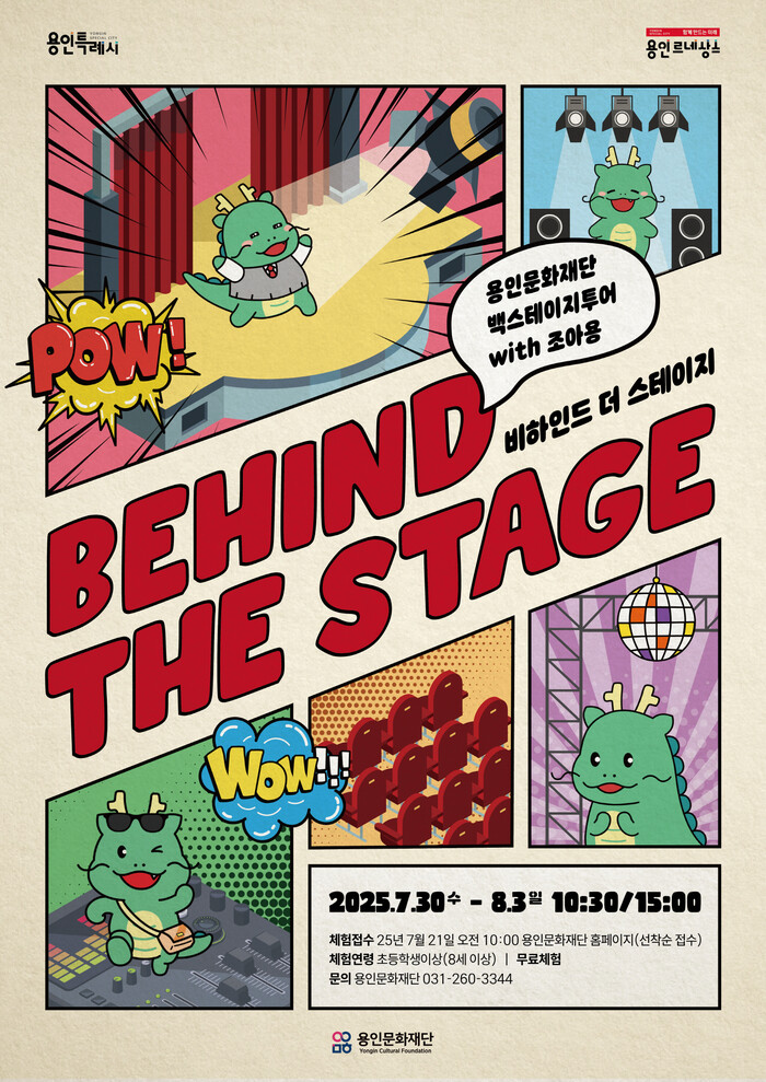 [용인=오왕석 기자] 용인문화재단(이사장 이상일)은 무대 체험 프로그램 조아용과 함께하는 ‘비하인드 더 스테이지(Behind The Stage)’를 오는 7월 30일부터 8월 3일까지 용인포은아트홀에서 개최한다.