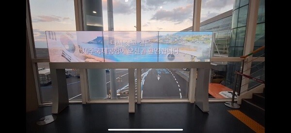 4월1일 ㈜퀀텀에어커뮤니케이션즈(대표 유지연)에 따르면 제주국제공항 스마트 다국어 안내시스템은 LG전자 투명 OLED 디스플레이(모니터)를 통해 공항 이용객들에게 수하물 수취대 위치, 현지 날씨와 관광지 등에 대해 실시간 편의 정보를 제공한다.