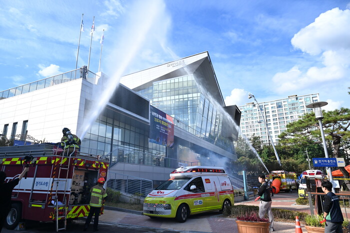 구리시는 지난 10월 24일 구리아트홀에서 ‘공연장 사고 및 인파 밀집·화재’를 주제로 복합 재난 상황을 가정한 훈련을 했다. 재난상황실에서 진행된 토론훈련과 구리아트홀 현장훈련을 동시에 운영하는 통합·연계 방식으로 훈련을 추진했다.