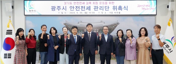경기 광주시는 최근 ‘경기 안전 전세 프로젝트’의 일환으로 ‘광주시 안전 전세 관리단’을 구성하고 위촉식을 진행했다. 사진은 방세환 시장(왼쪽 일곱 번째)이 관리단과 기념촬영하는 모습. (사진=광주시청 제공)