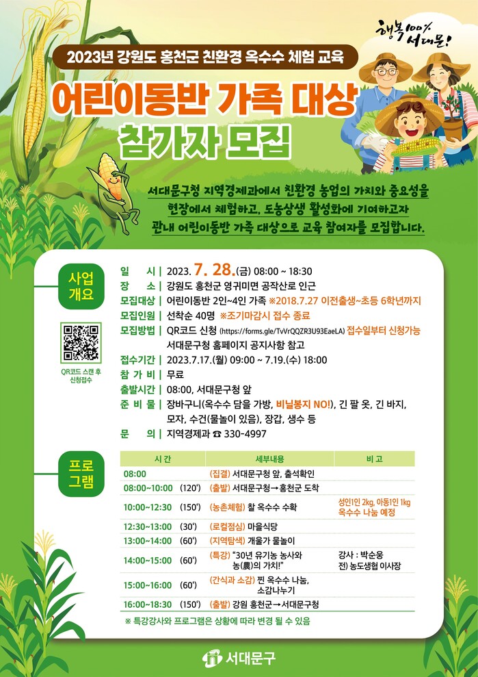| ▲ 강원도 홍천군 친환경 옥수수 체험 교육 안내문. (사진=서대문구청 제공) |