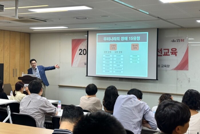 ‘모두가 존중받는 사회 만들기’라는 주제로 이뤄진 이날 교육은 장애인과 비장애인이 함께 살아가는 사회를 만들기 위해서는 공공기관부터 달라져야 한다는 뜻에서 기획됐다.