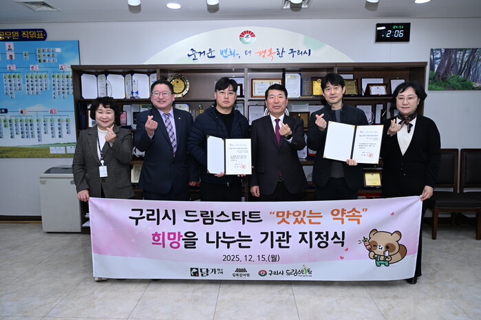 이날 지정식에는 김효상 한국외식업중앙회 구리시지부장, 박경철 길목감자탕 대표, 이정택 담가화로구이 구리토평점 대표가 참석했으며, 앞으로 매월 2가정씩 총 4가정에 대한 외식 후원이 진행될 예정이다.