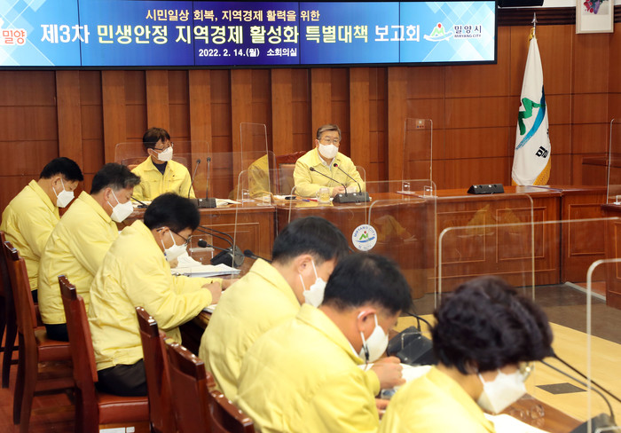 밀양시는 코로나19 확산과 장기화로 위축된 지역경제에 활력을 불어넣고 시민들의 일상을 회복하기 위해 14일 ‘제3차 민생안정 지역경제 활성화 특별대책 보고회’를 개최하며 올해도 지역경제 활성화를 위한 대책 추진에 본격적으로 나섰다.