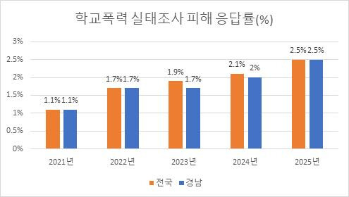 [창원=최성일 기자]경상남도교육청(교육감 박종훈)은 전국 17개 시·도교육청이 공동으로 실시한 ‘2025년 1차 학교폭력 실태조사’ 결과를 발표했다.