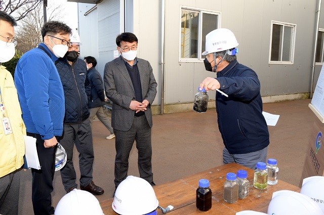 [광주=정찬남 기자] 김종효 광주광역시 행정부시장이 4일 오후 제1하수처리장 하수슬러지 처리시설을 방문해 관계자로부터 시설 운영방식 등에 대한 설명을 듣고 있다.