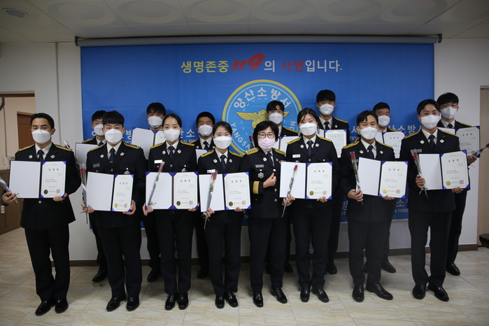 | ▲ 양산소방서, 신규임용 소방공무원 신고식 사진 |