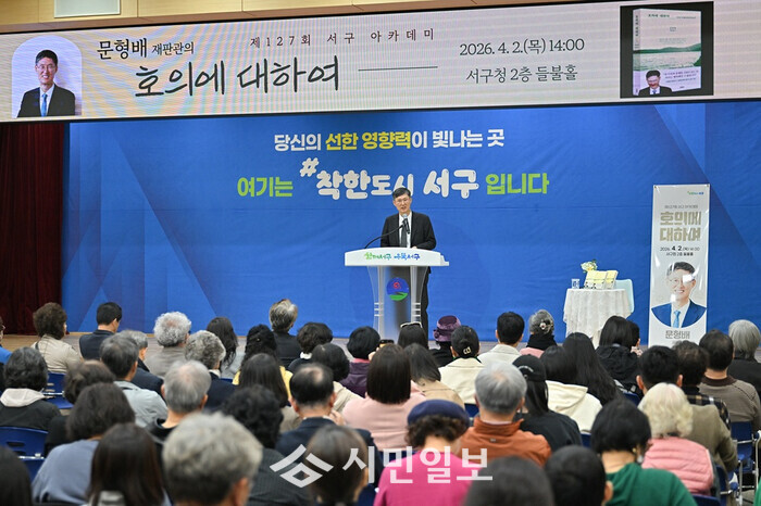 서구는 지난 2일 서구청 들불홀에서 열린 ‘127회 서구 아카데미’에 문형배 전 헌법재판소장 권한대행을 초청해 ‘호의에 대하여’를 주제로 특별강연을 개최했다. 이번 강연은 갈등이 심화된 시대에서 민주주의의 의미와 역할을 되새기고 우리 사회가 나아갈 방향을 모색하는 데 초점을 맞췄다.