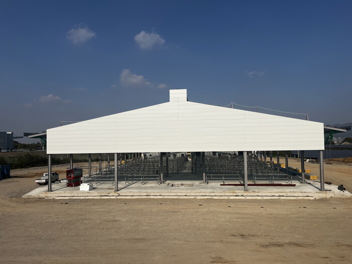 | ▲ 예산가축경매시장 계류대 등 설치 장면. (사진=예산군청 제공) |