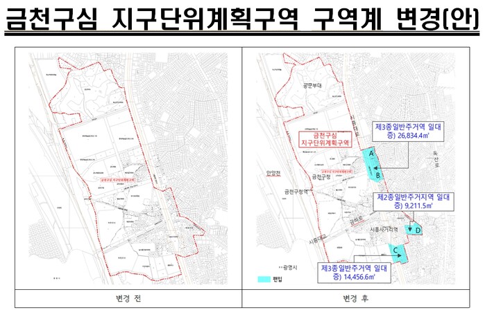 | ▲ 금천구심 지구단위계획구역 구역계 변경안.(사진=금천구청 제공) |