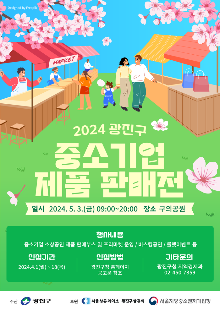 [시민일보 = 여영준 기자] 서울 광진구(구청장 김경호)가 오는 5월3일 구의공원에서 개최되는 ‘2024년 광진구 중소기업 제품 판매전’에 참여할 업체를 모집한다.