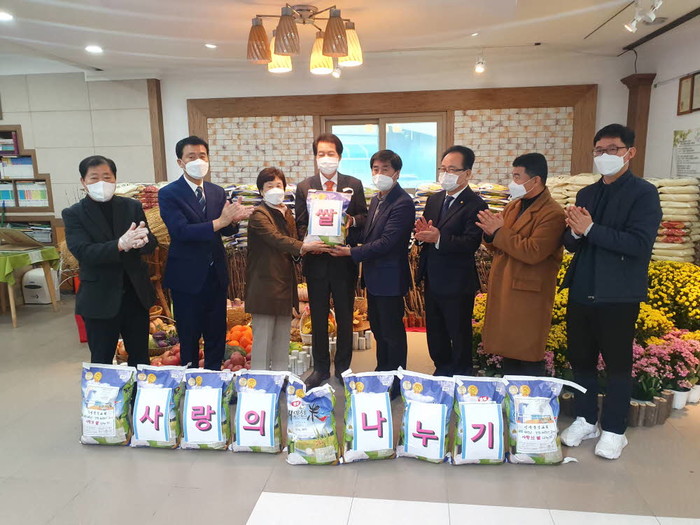서울 성북구 석관동 주민센터는 최근 신생중앙교회로부터 교회설립 44주년과 추수감사절을 맞아 지역의 어려운 이웃을 위한 사랑의 쌀을 전달받았다. 이날 전달식에는 석관동 주민센터를 비롯한 성북구 1개동, 노원구 소재 2개동 등 총 4개동 주민센터가 참석해 쌀 200kg씩을 전달받았다. 사진은 전달식에서 관계자들이 기념촬영을 하는 모습. (사진제공=성북구청)