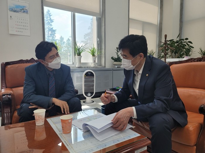 | ▲ 김광진 광주광역시 문화경제부시장이 5일 국회를 방문해 국토교통위원회 김민기 위원장을 만나 내년도 주요 사업을 설명하고 적극적인 협조를 요청하고 있다. / 광주광역시 제공 |
