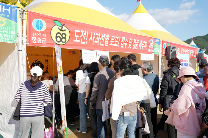 [청송=박병상 기자] ‘제18회 청송사과축제’가 연일 수많은 관광객들로 북적이고 있다. 지난30일 개막한 제18회 청송사과축제는 “청송사과, 끝없는 비상”이라는 주제로 11월 3일까지 청송읍 용전천 일원에서 개최되고 있으며, 화창한 가을날 덕분에 첫날부터 관광객들이 붐비더니 둘째 날까지도 그 발걸음이 계속 이어졌다.