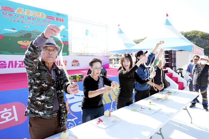 이 외에도 청송골든벨 사과 올림픽 3종 경기, 도전-사과 선별 로또, 꿀잼-사과난타, 만유인력-황금사과 찾아라 등 다양한 체험 프로그램이 연일 성황을 이루며 관람객들에게 색다른 즐거움을 선사하고 있다.